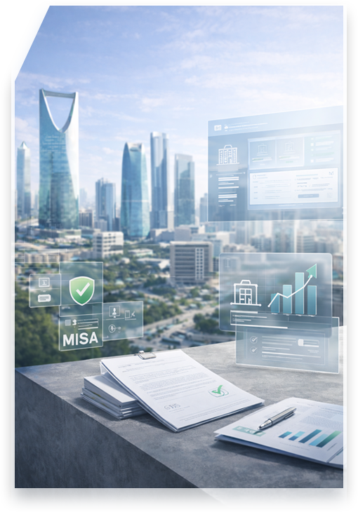 With over a decade of experience, Corpenta specializes in establishing foreign-owned companies in Saudi Arabia under MISA regulations. We manage investment licensing, commercial registration, tax compliance, Qiwa & GOSI setup, and all Saudi governmental platforms — ensuring a fast, smooth, and transparent process.